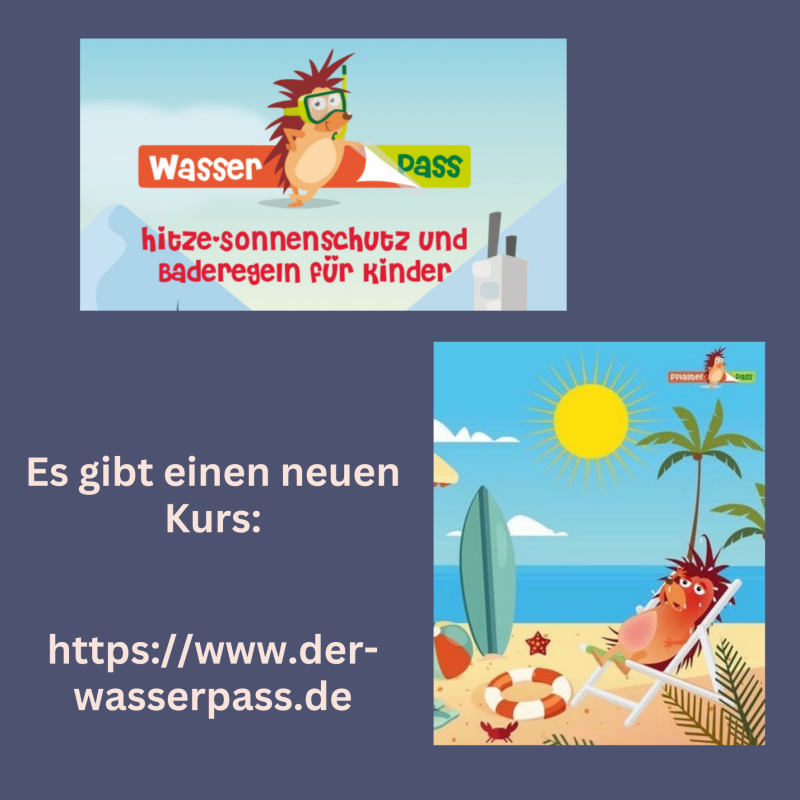 Mit einer liebenswerten Geschichte vom Igelchen, aus den Pflasterpass® -Kursen, werden die Kinder spielerisch für die Gefahren am und im Wasser sowie die Gefahren durch Hitze und Sonne sensibilisiert.